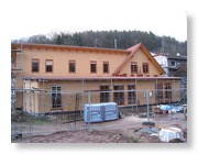 Mangelndes Verständnis seitens von Gemeinde und Verwaltungen was ein Holzhaus betraf, führten fast dazu, dass unsere Pläne scheiterten. Letztlich einigten wir uns. Das Haus musste u. A. nun aber höher, und somit auch teuerer werden. Wir entschieden uns - aus ökologischen Aspekten - für eine Holzrahmenbauweise mit deutschen Hölzern und für eine Luft-Wärmepumpe. Trotz unzähliger Fördertöpfe die Dorferneuerungen, Energiesparhäuser, den Tourismus oder Barrierefreiheit fördern, war unsere Planung dafür zu klein, zu groß, zu gewerblich, zu privat, dem Denkmalamt nicht passend, etc. und wir gingen komplett leer aus. Aber so konnten unser Pläne zeitnah umgesetzt werden.